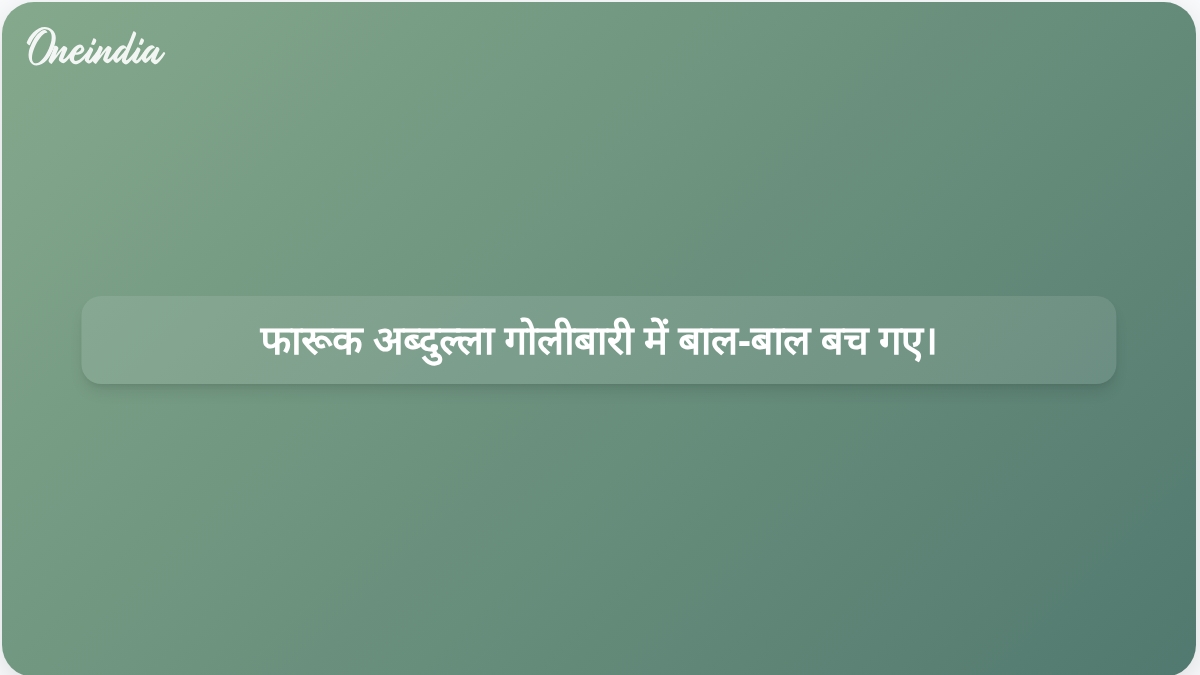 नेशनल कॉन्फ्रेंस के अध्यक्ष और जम्मू-कश्मीर के पूर्व मुख्यमंत्री फारूक अब्दुल्ला बुधवार रात जम्मू में एक शादी समारोह के दौरान एक बंदूकधारी द्वारा उन पर गोली चलाने से बाल-बाल बच गए। यह घटना तब हुई जब अब्दुल्ला, उपमुख्यमंत्री सुरेंद्र चौधरी और मुख्यमंत्री के सलाहकार उमर अब्दुल्ला, नासिर असलम वानी के साथ कार्यक्रम से निकल रहे थे।
