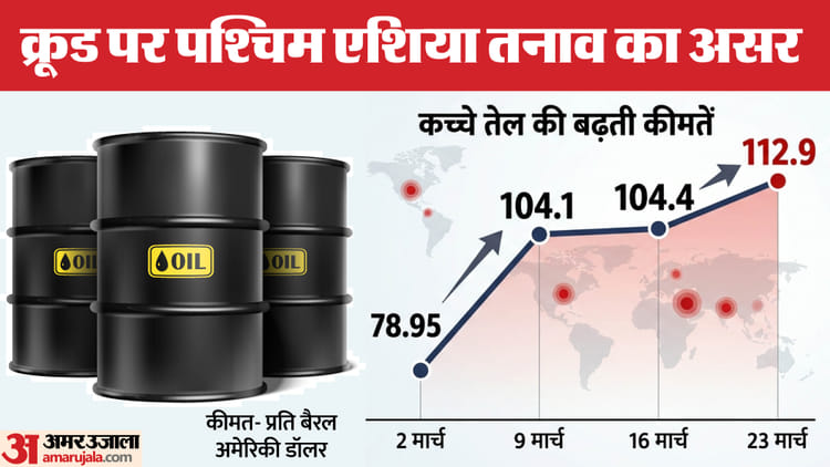 पश्चिम एशिया तनाव का असर कच्चे तेल की कीमतों पर देखने को मिल रहा है। वैश्विक बाजार में कच्चे तेल की कीमतों में हल्की गिरावट दर्ज की गई है। अंतरराष्ट्रीय तेल बेंचमार्क ब्रेंट क्रूड वायदा कारोबार में 0.60 फीसदी की कमजोरी के साथ 112.90 डॉलर प्रति बैरल पर कारोबार करता देखा गया।