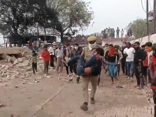 उत्तर प्रदेश के प्रयागराज में सोमवार दोपहर करीब डेढ़ बजे तेज धमाके के बाद कोल्ड स्टोरेज की एक बिल्डिंग ढह गई। मलबे में करीब 20 मजदूर दब गए। हादसे में 4 मजदूरों की मौत हुई है। मरने वालों में पिलत चौधरी, मशींदर, ज्योतिष और जगदीश शामिल हैं। जगदीश प्रयागराज और बाकी तीनों बिहार के रहने वाले थे। हालांकि, प्रशासन ने अभी मौतों की पुष्टि नहीं की है। प्रशासन 7 जेसीबी से रेस्क्यू ऑपरेशन चला रहा है। अब तक 17 लोगों को मलबे से बाहर निकाला गया है। एसडीआरएफ और एनडीआरएफ की टीम मौके पर हैं। यह कोल्ड स्टोरेज सपा नेता और पूर्व मंत्री अंसार अहमद का है। प्रत्यक्षदर्शियों का कहना है, पहले अमोनिया गैस स्टोरेज टैंक में विस्फोट हुआ। इससे आरसीसी पिलर स्ट्रक्चर ढह गया। फिर बिल्डिंग भरभराकर गिर गई। अमोनिया गैस की बदबू करीब 1 किलोमीटर तक फैल चुकी है। ज्यादातर लोग मुंह पर कपड़ा (रुमाल, गमछा) बांधे हुए हैं। घटना को लेकर लोग गुस्से में हैं। पुलिस को भी विरोध का सामना करना पड़ा। हादसे की तस्वीरें देखिए- कोल्ड स्टोरेज 5 हजार स्क्वायर फीट जमीन पर बना आदर्श कोल्ड स्टोरेज नाम से यह बिल्डिंग हादसा फाफामऊ इलाके में थी। इसके मालिक सपा नेता और पूर्व मंत्री अंसार अहमद है। 27 साल पुराना कोल्ड स्टोरेज करीब 5 हजार स्क्वायर फीट जमीन पर बना है। इसमें तीन बिल्डिंग हैं। करीब 1500 स्क्वायर फीट एक बिल्डिंग ढही है। यहां 100 से ज्यादा लोग काम करते हैं। पुलिस ने कोल्ड स्टोरेज के मैनेजर और अंसार अहमद के परिवार के कई सदस्यों को हिरासत में लिया है। सीएम योगी ने मृतकों को 2-2 लाख और घायलों को 50 हजार रुपए देने का ऐलान किया है। उन्होंने घटना पर दुख जाहिर किया है। घटना से जुड़े पल-पल के अपडेट्स के लिए लाइव ब्लॉग से गुजर जाइए…