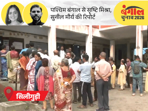 सिलीगुड़ी में वोट डालने के लिए लाइन में लगे वोटर