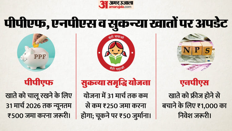 वित्त वर्ष 2025-26 खत्म होने में अब बस कुछ ही दिन बचे हैं। अगर आपने पब्लिक प्रोविडेंट फंड (पीपीएफ), सुकन्या समृद्धि योजना (एसएसवाई) या नेशनल पेंशन सिस्टम (एनपीएस) जैसी टैक्स-सेविंग स्कीमों में निवेश किया हुआ है, तो आपके लिए 31 मार्च 2026 एक बेहद अहम तारीख है। अगर आपने इस तारीख तक एक जरूरी काम नहीं निपटाया, तो आपका खाता बंद (इनएक्टिव) हो सकता है और आपको भारी नुकसान के साथ-साथ पेनाल्टी (जुर्माना) भी भरनी पड़ सकती है।