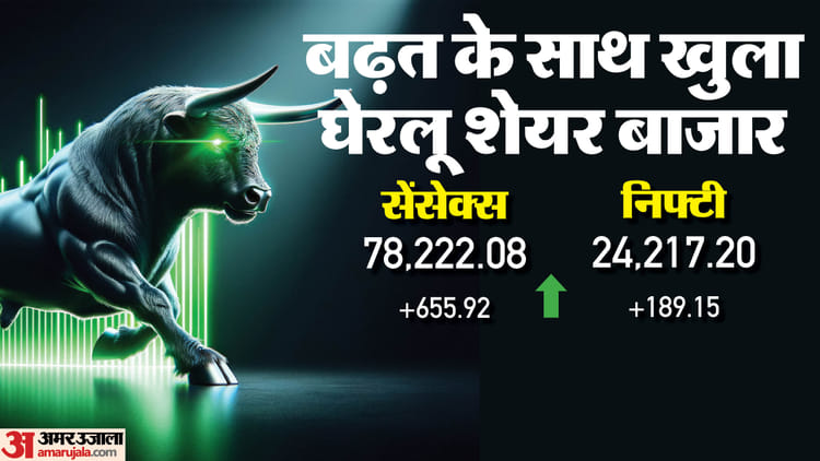 भारतीय बाजार मंगलवार को हरे निशान पर खुला। अमेरिकी राष्ट्रपति डोनाल्ड ट्रंप के उस बयान के बाद बाजार का माहौल सुधरा है, जिसमें उन्होंने संकेत दिया कि अमेरिका और ईरान के बीच चल रहा संघर्ष जल्द समाप्त हो सकता है। शुरुआती कारोबार में 30 शेयरों वाला सेंसेक्स 655.92 अंक या 0.85% चढ़कर 78,222.08 पर आ गया। वहीं 50 शेयरों वाला निफ्टी 189.15 अंक या 0.79% बढ़कर 24,217.20 अंक पर आ गया।